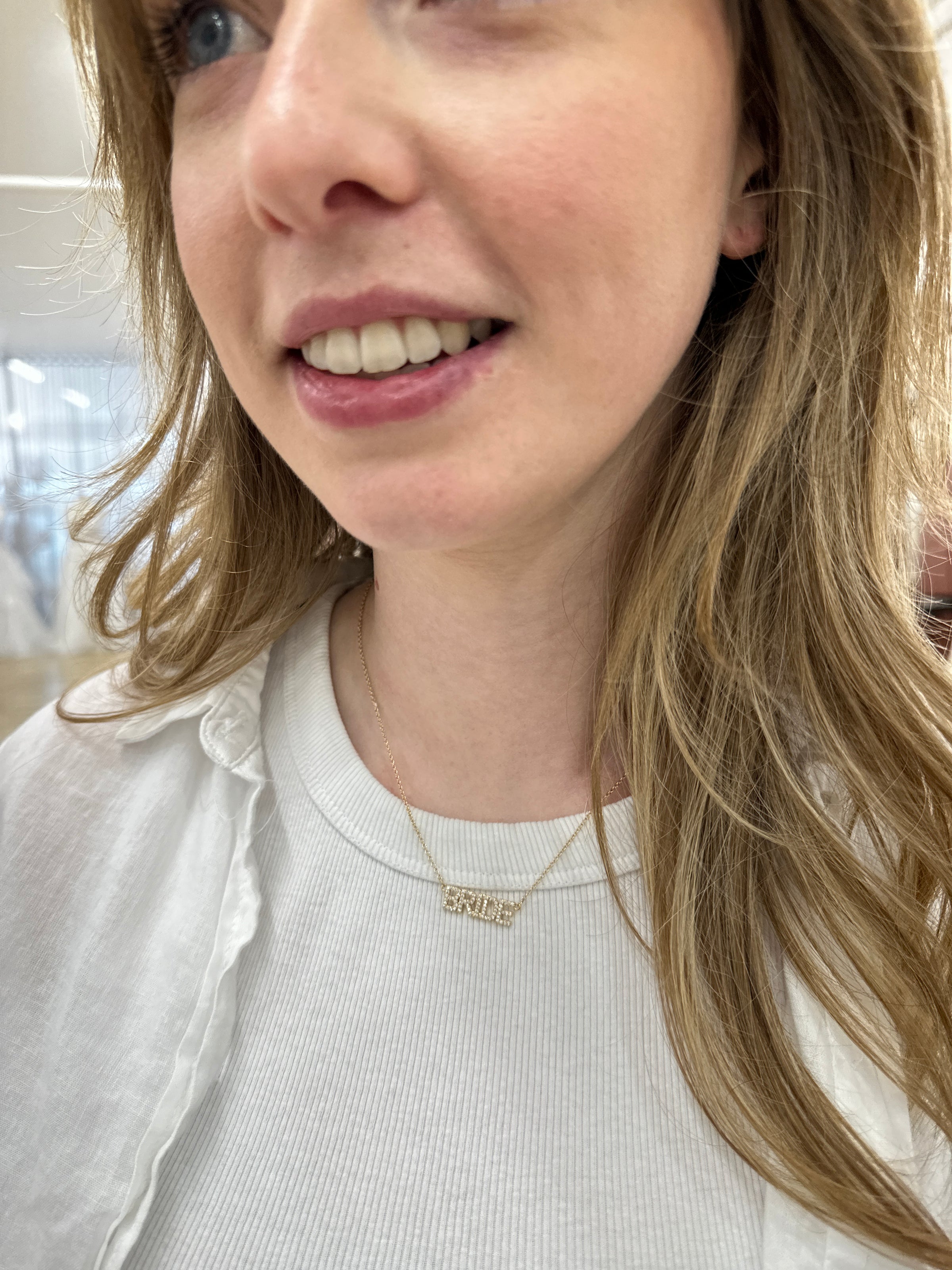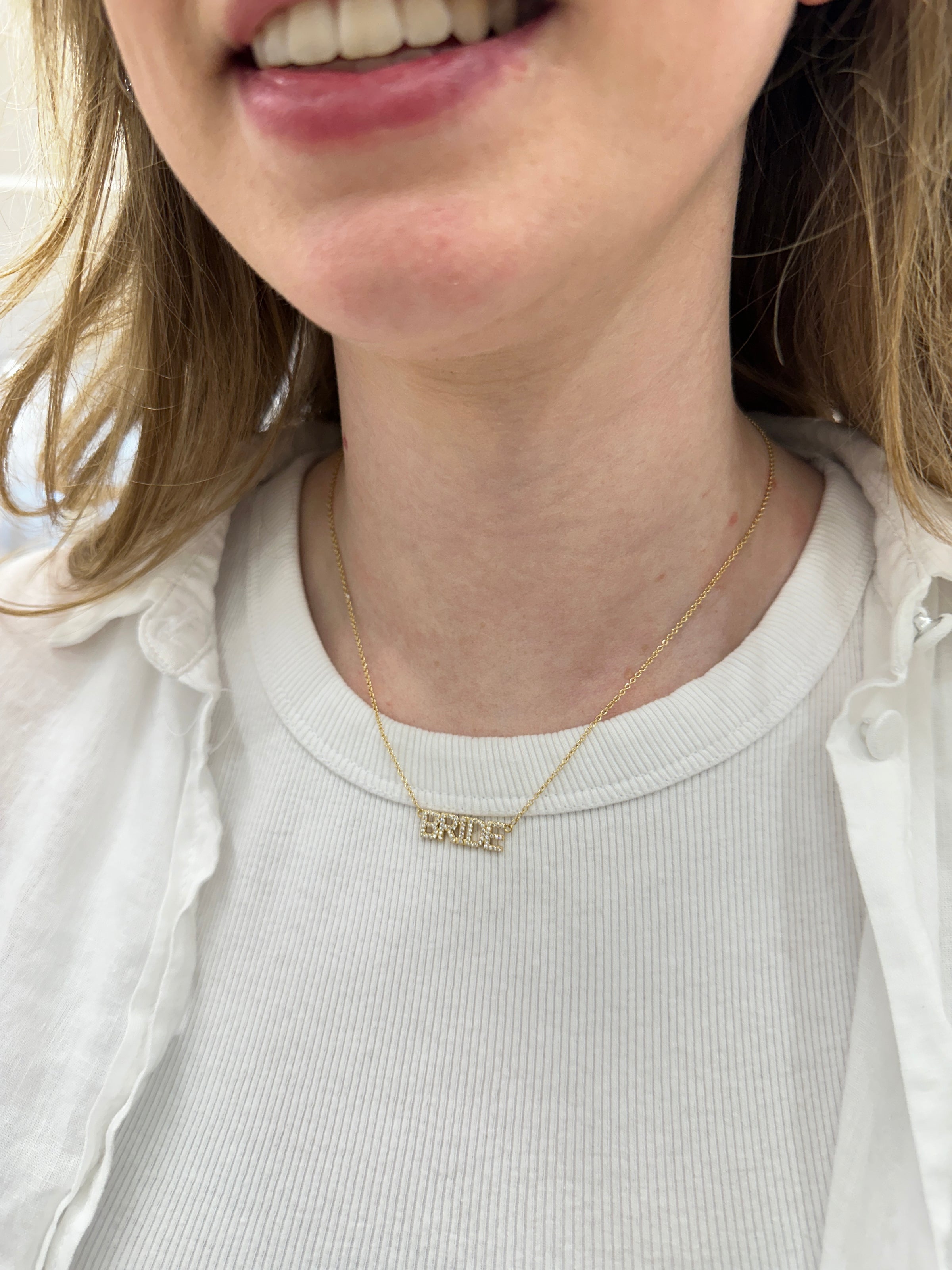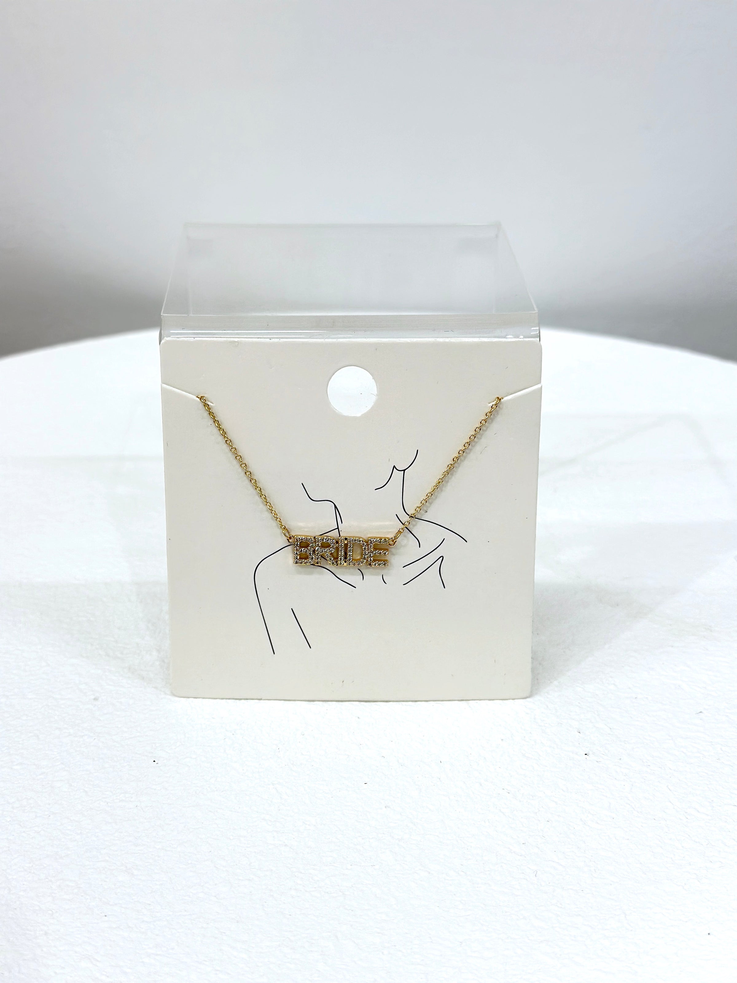 Make sure everyone knows who the star of the show is at your special day with our BRIDE Necklace! The necklace is a delicate gold chain with "BRIDE" spelled out in sparkling rhinestones - perfect for the blushing bride-to-be! Accessorise your outfit with a touch of glitz and glam and be the belle of the ball -literally!