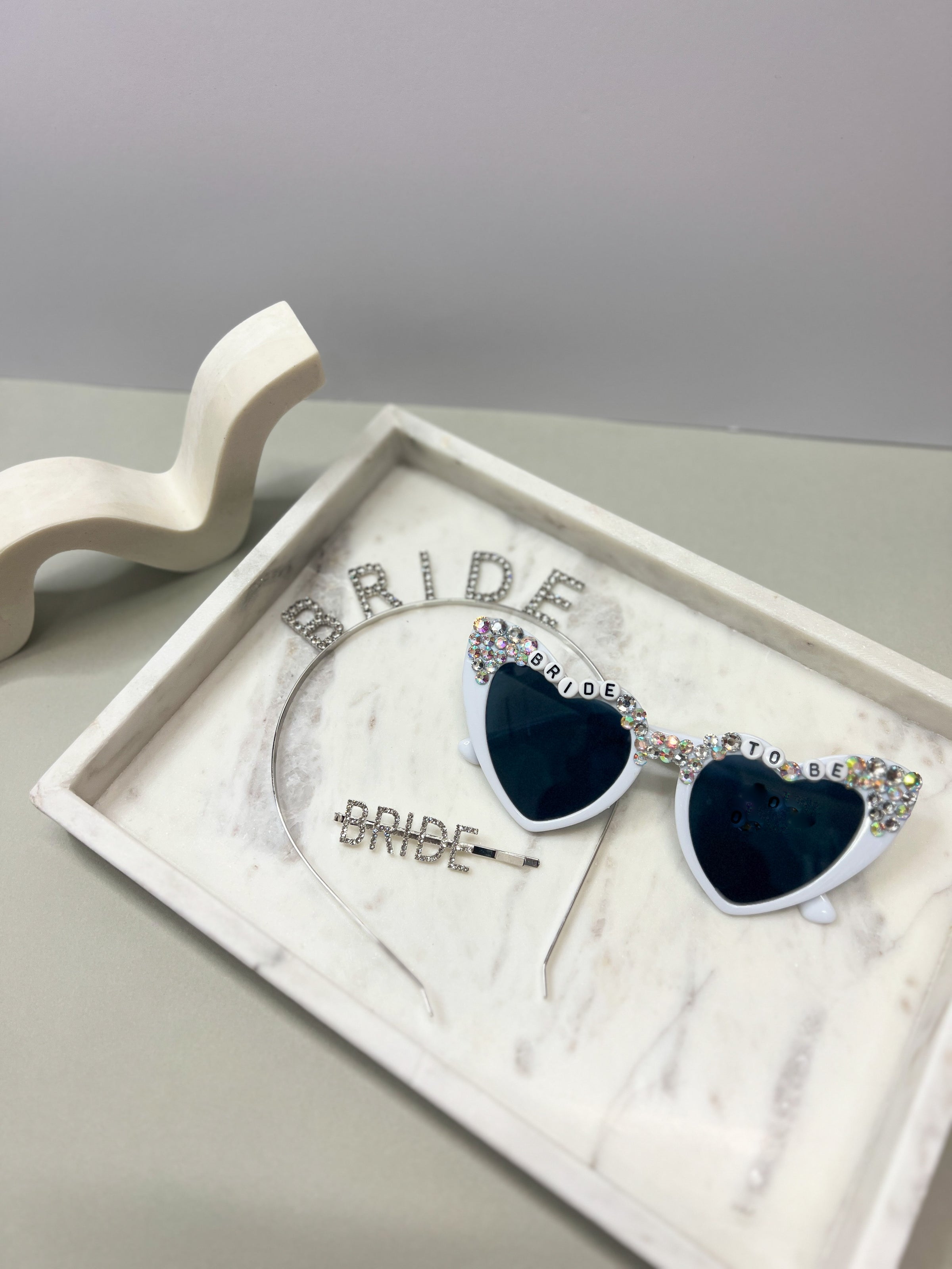 Add some sparkle to the hens party with the Bride Bling Giftpack! This gift is perfect for the bride to be and includes a rhinestone headband, hair slide, and heart-shaped blingy sunglasses in your choice of silver, gold, or rose gold. It's the perfect accessory to make the bride shine on her special day!