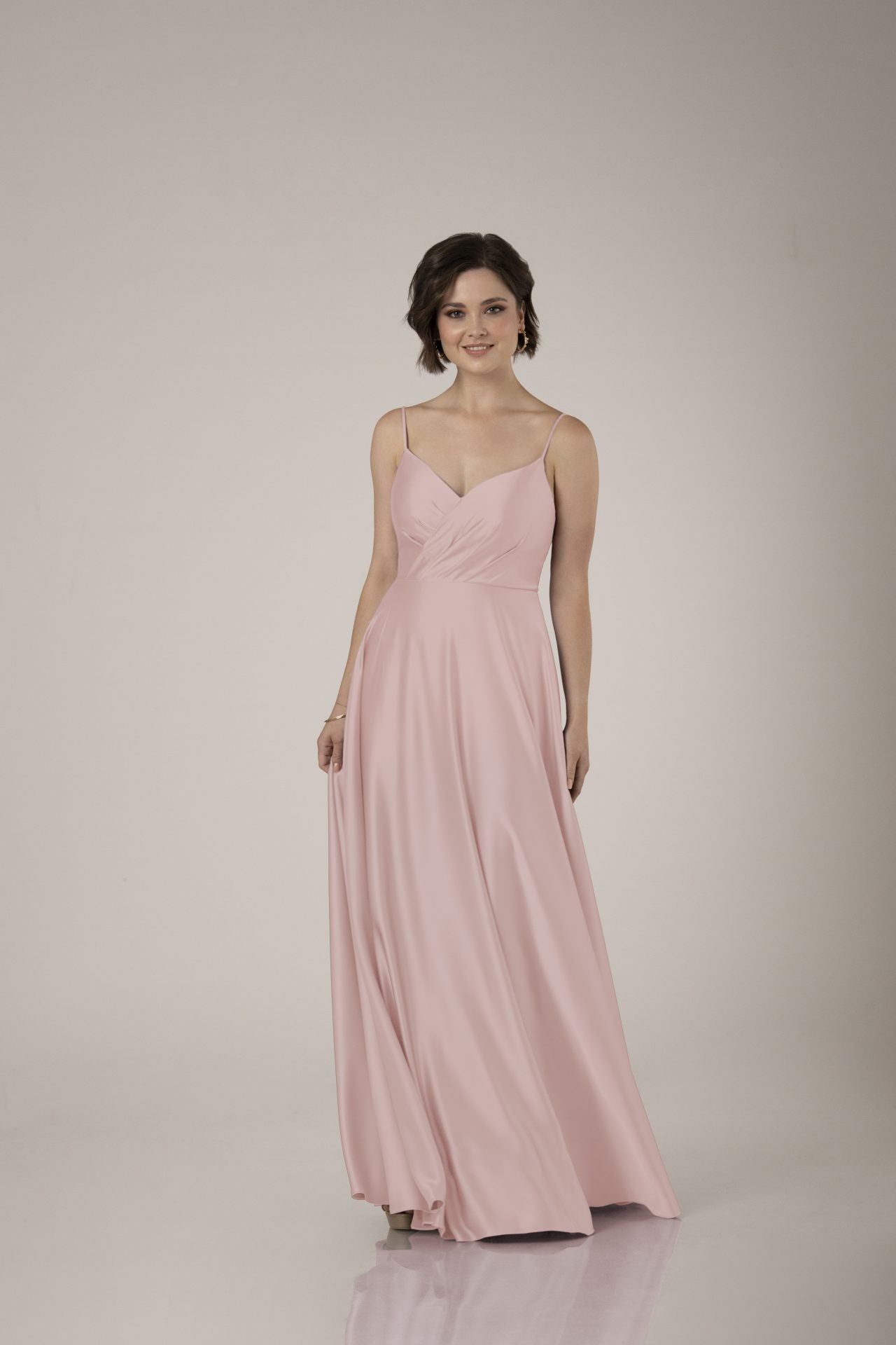 V-NECKLINE CHARMEUSE BRIDESMAID DRESS WITH FULL SKIRT