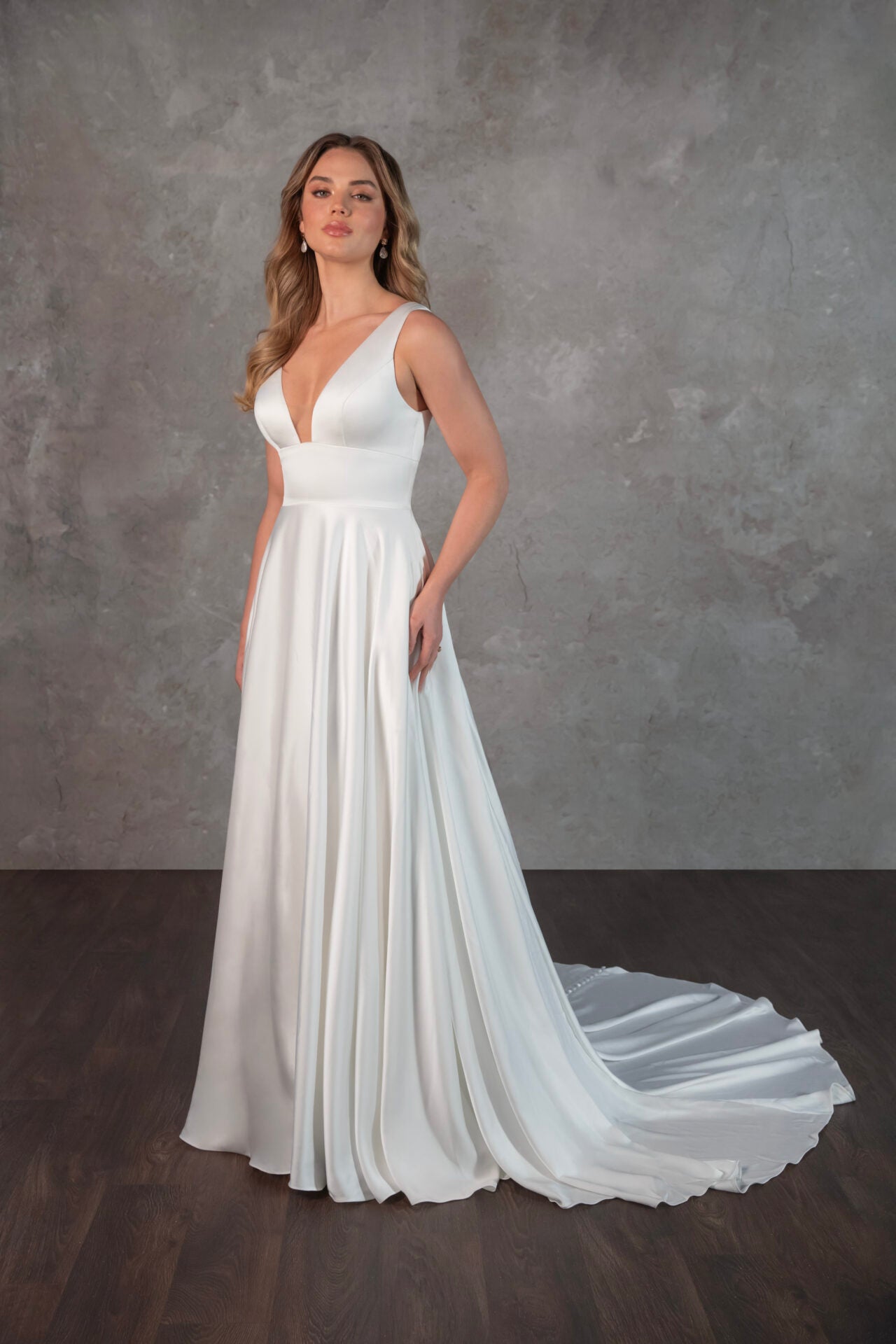 Sleek Satin A-Line Wedding Dress with Plunging Neckline