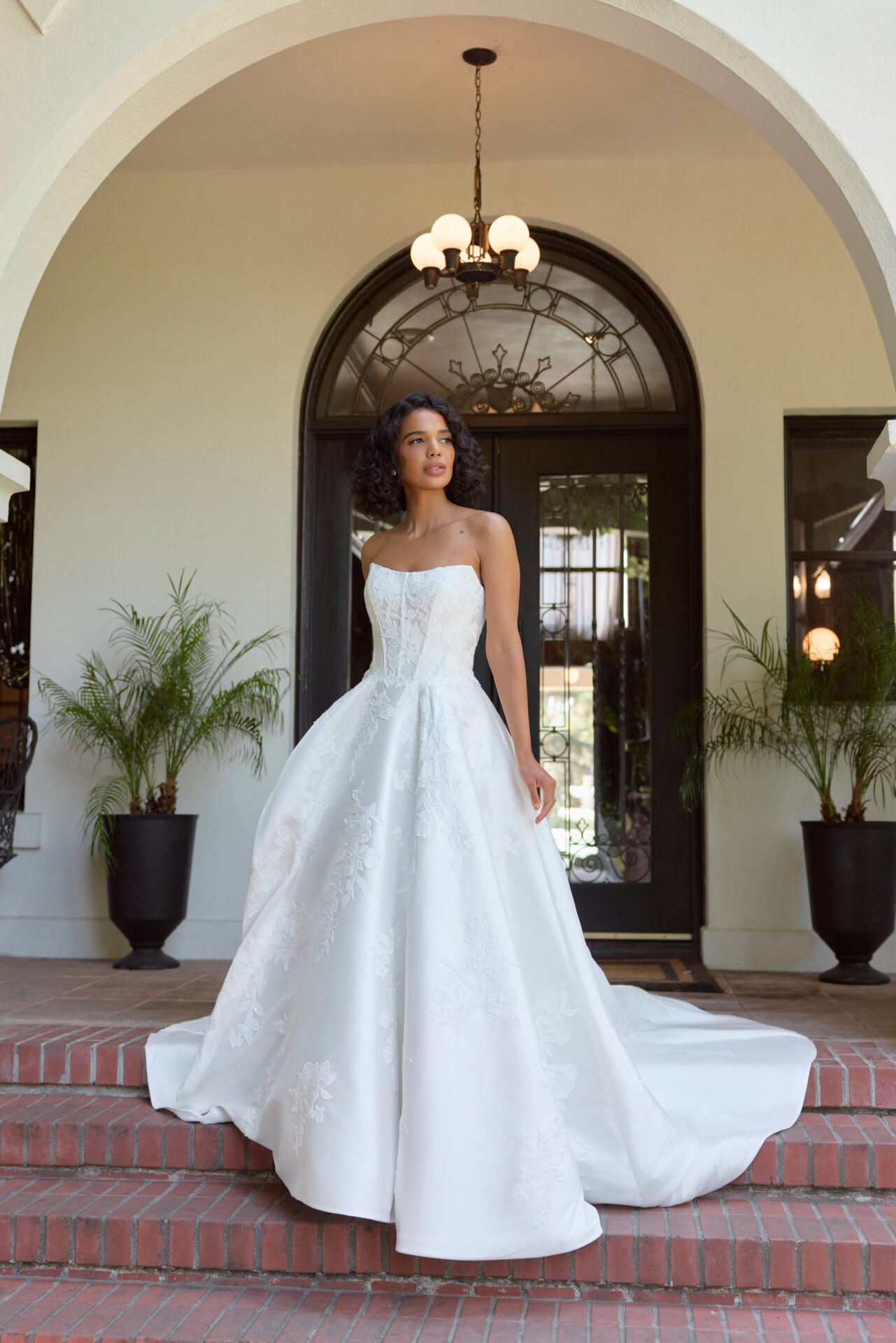 Strapless Mikado A-Line Wedding Dress with Floral Lace Appliqués