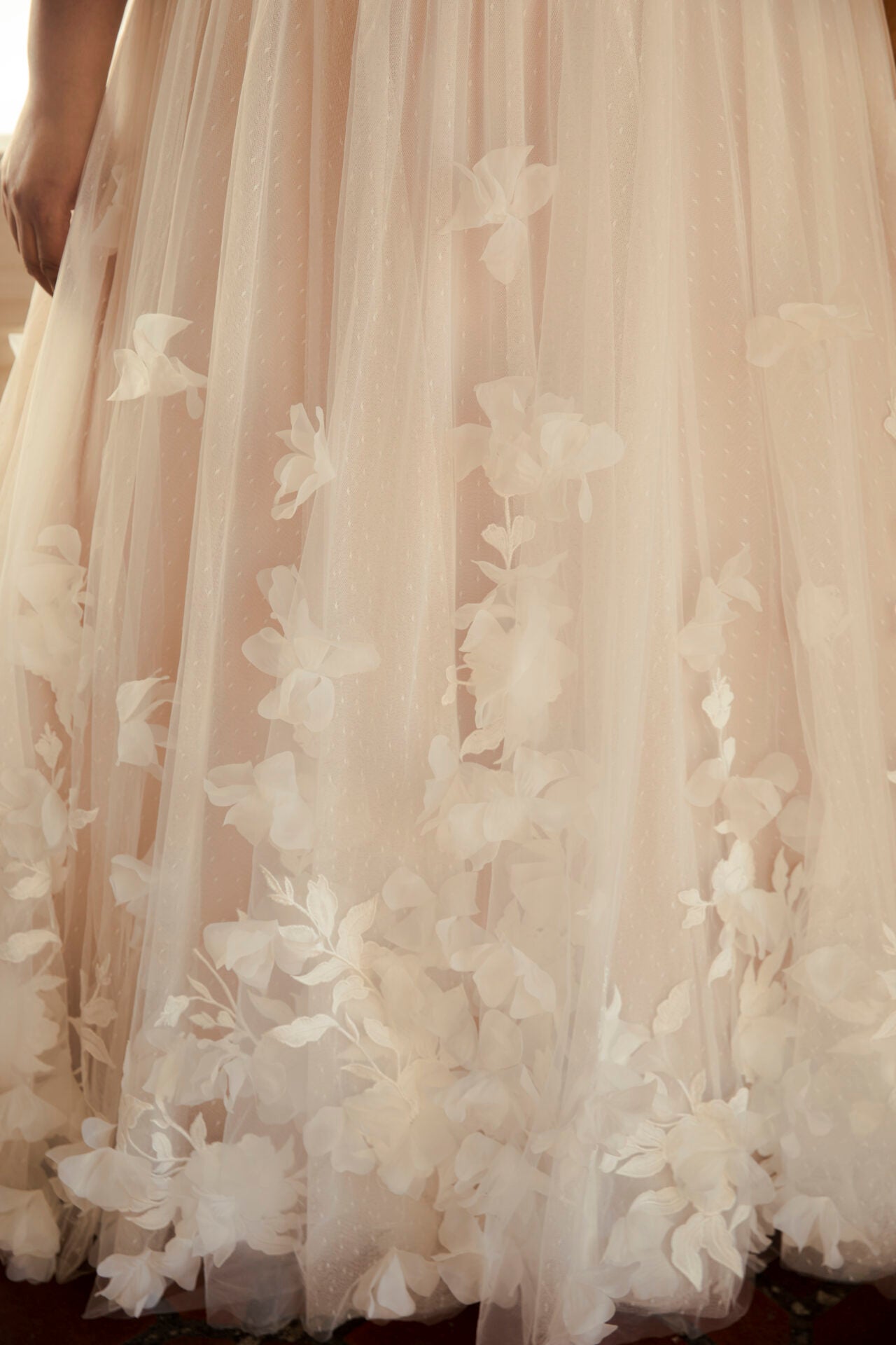 WHIMSICAL TULLE BALLGOWN WEDDING DRESS WITH 3D FLORALS AND OFF-THE-SHOULDER STRAPS