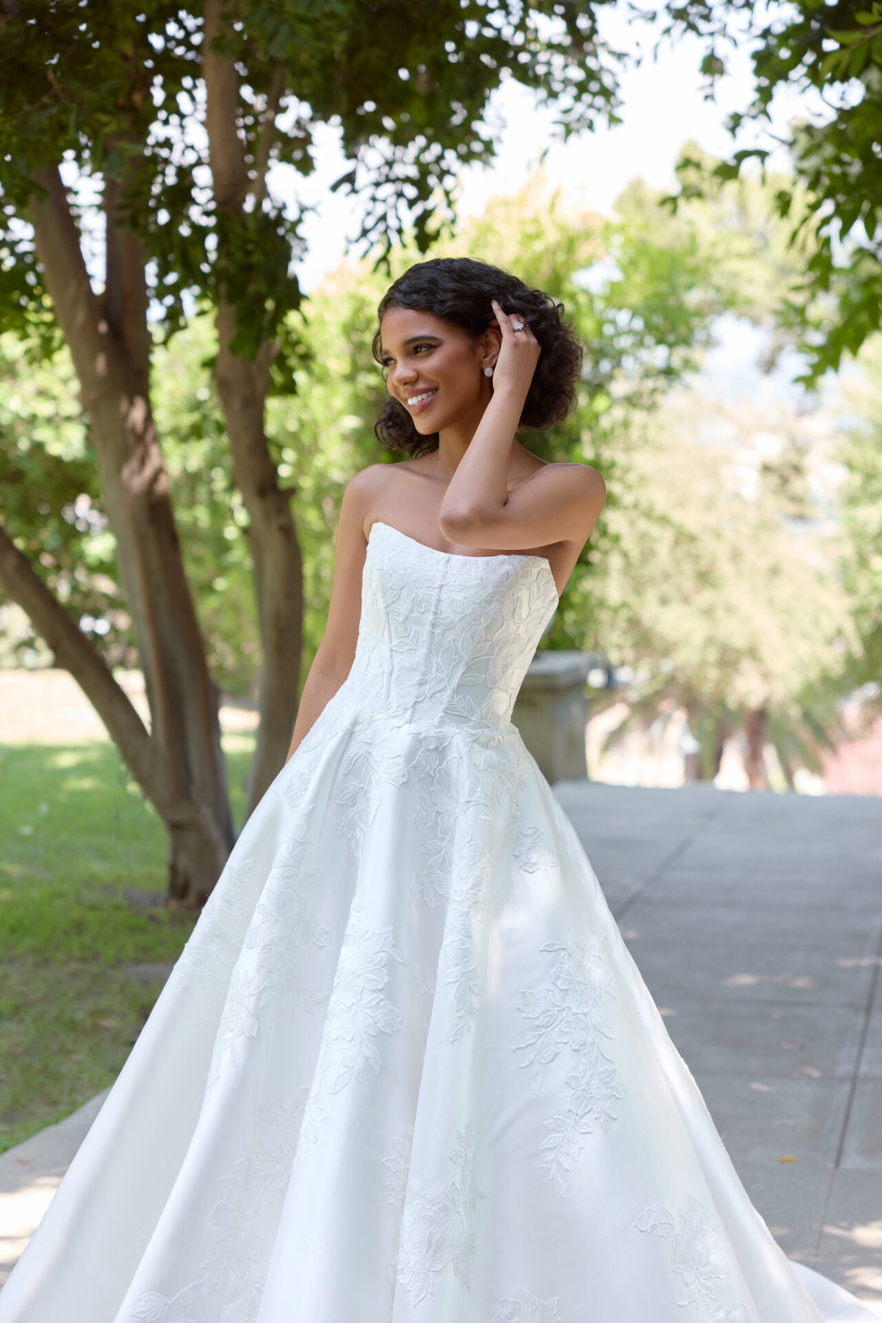 Strapless Mikado A-Line Wedding Dress with Floral Lace Appliqués