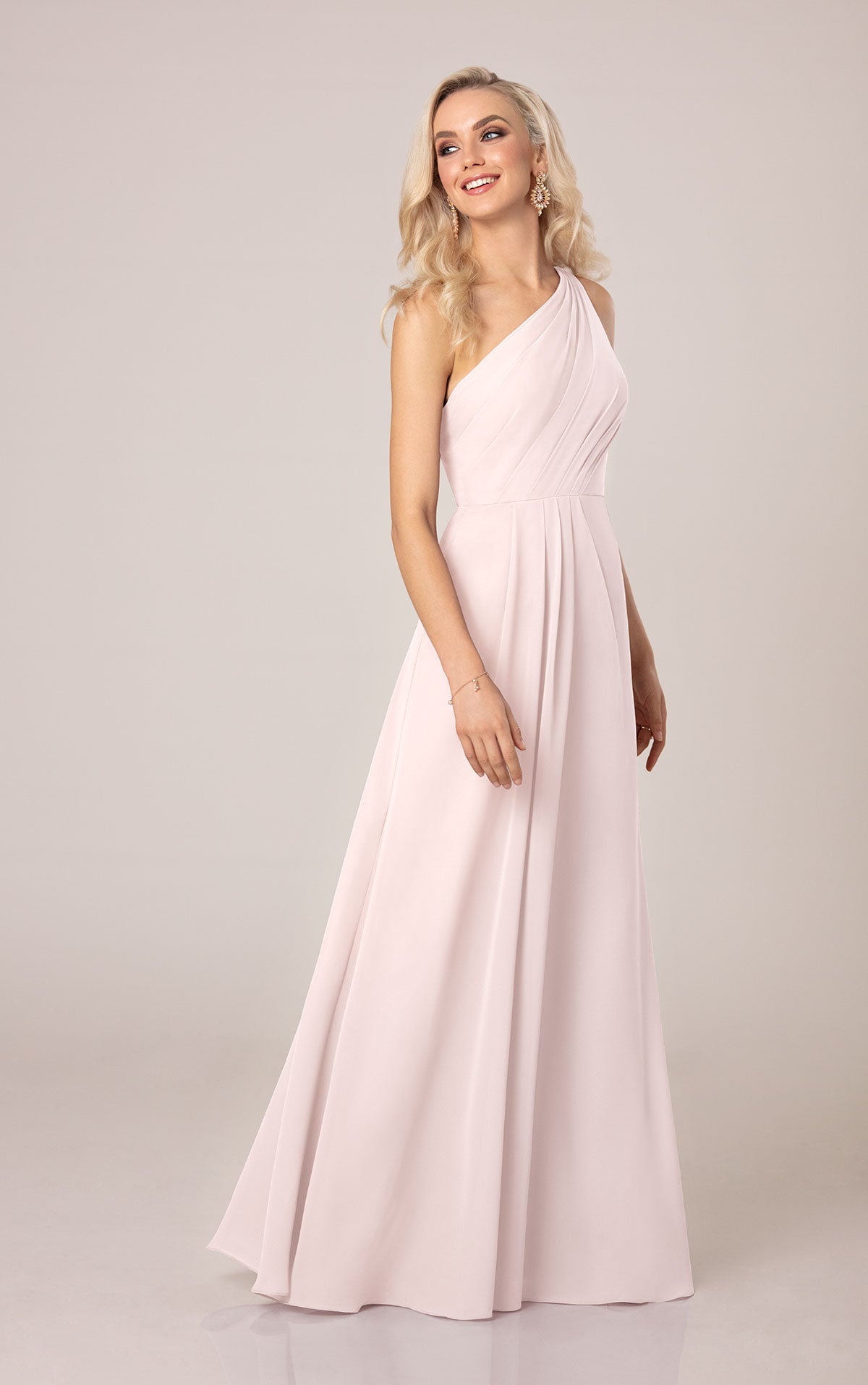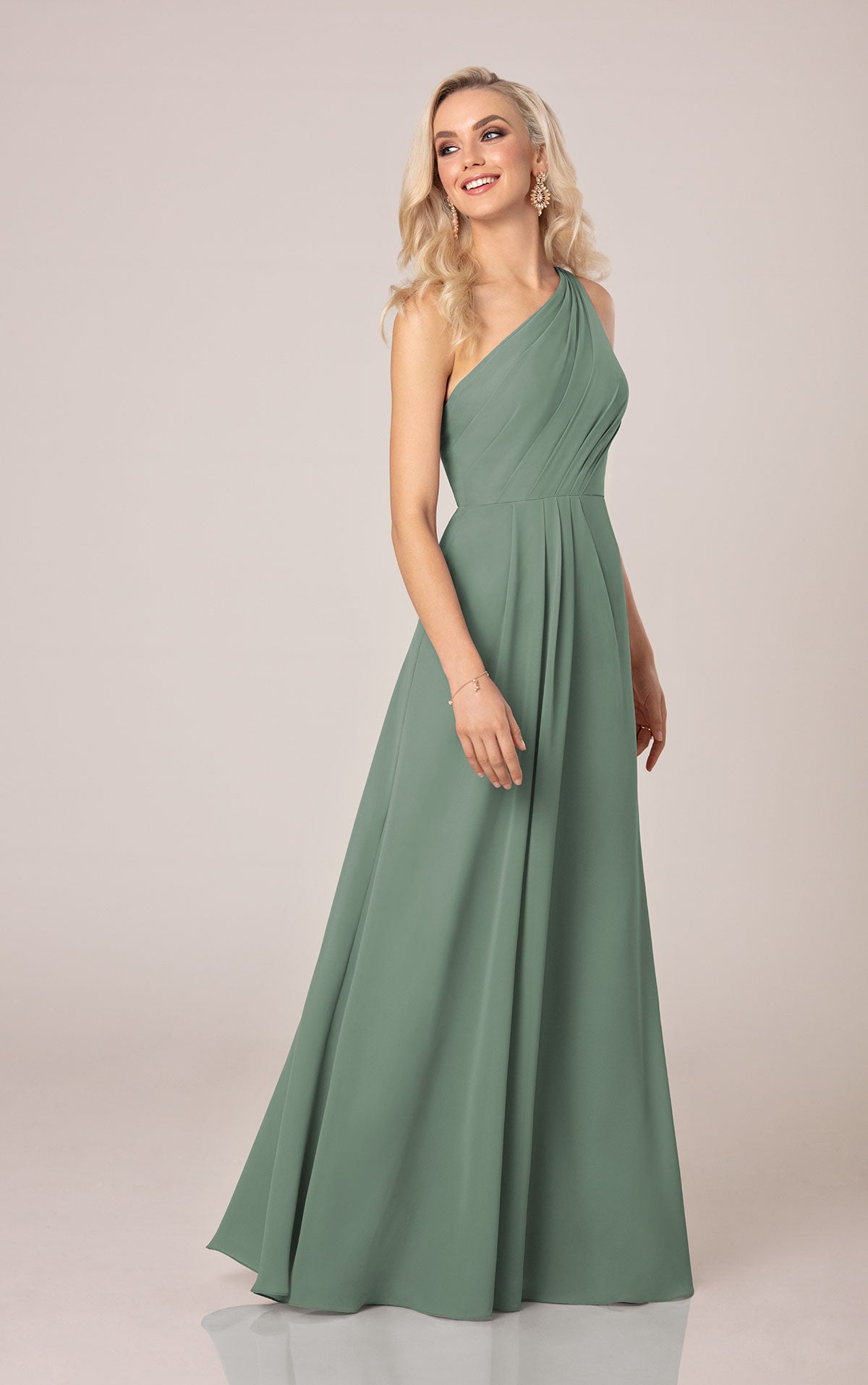SIMPLE ONE-SHOULDER BRIDESMAID DRESS WITH RUCHING