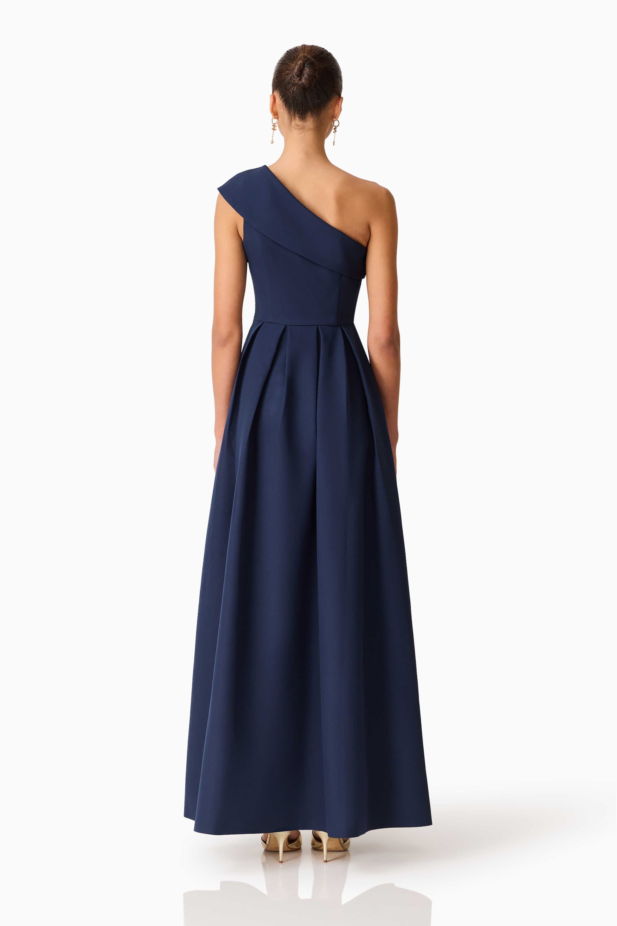The Saphine One Shoulder Gown in Navy is a refined statement piece designed for elegant evening occasions. Featuring an asymmetrical neckline, this gown highlights the shoulder with a modern, sculptural finish that feels both timeless and contemporary.