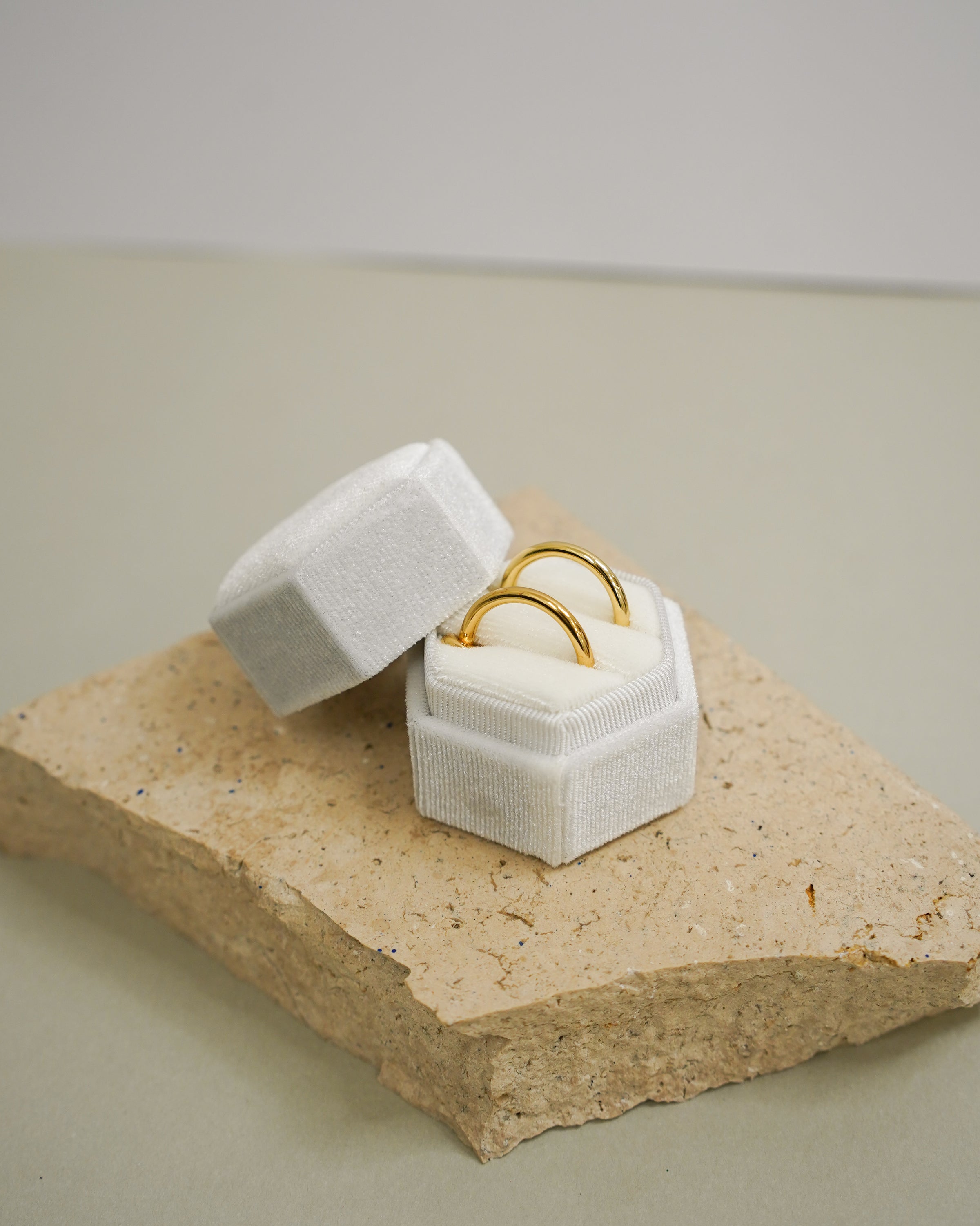 Velvet Hexagon Double Ring Box for Wedding Ceremony