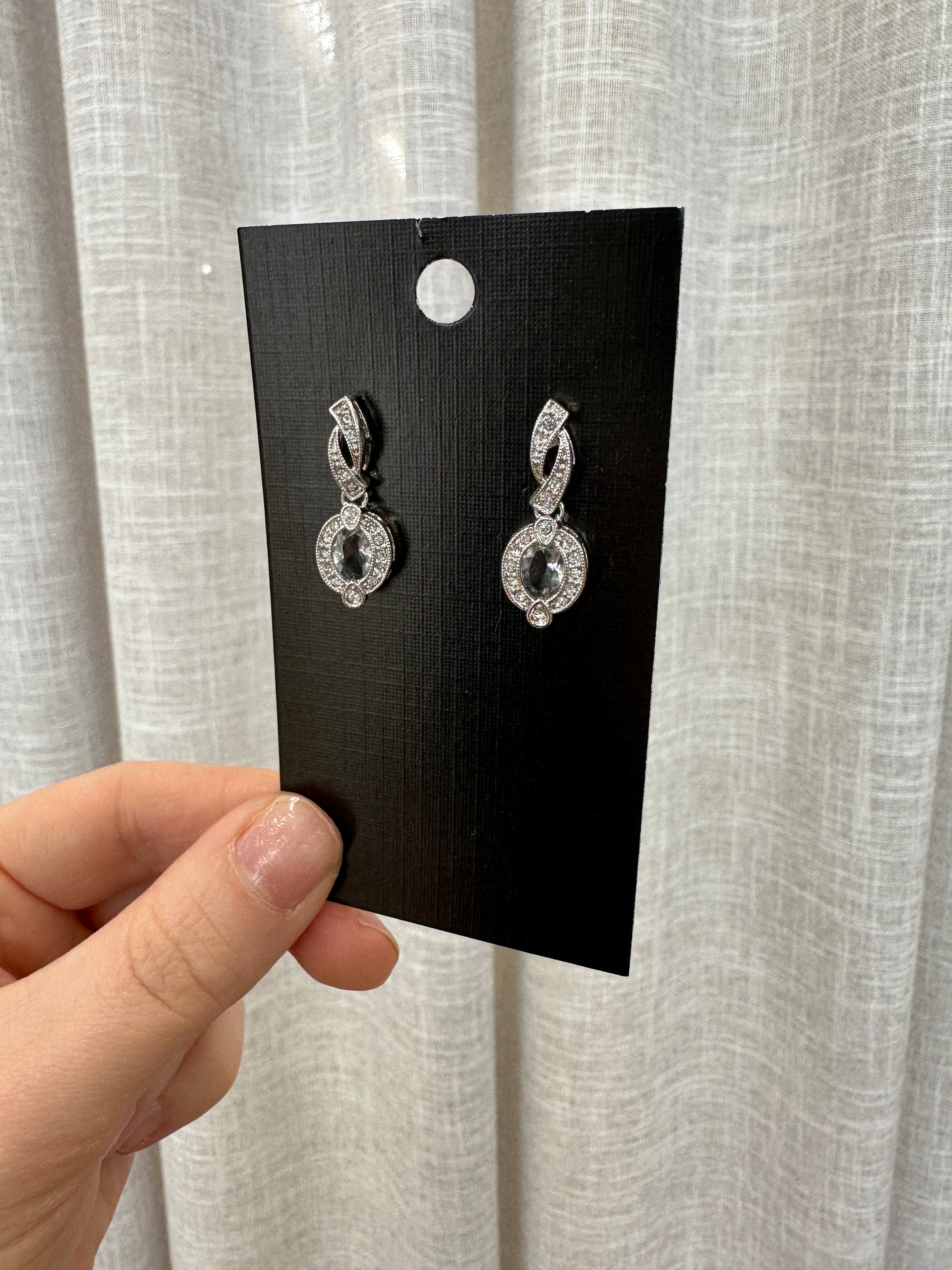 These stunning earrings feature a dazzling central crystal encircled by a gracefully twisted loop of smaller, sparkling stones. Perfect for any occasion, they offer an elegant touch to both casual and formal outfits. Crafted with precision, these earrings are designed to catch the light beautifully, enhancing their allure.