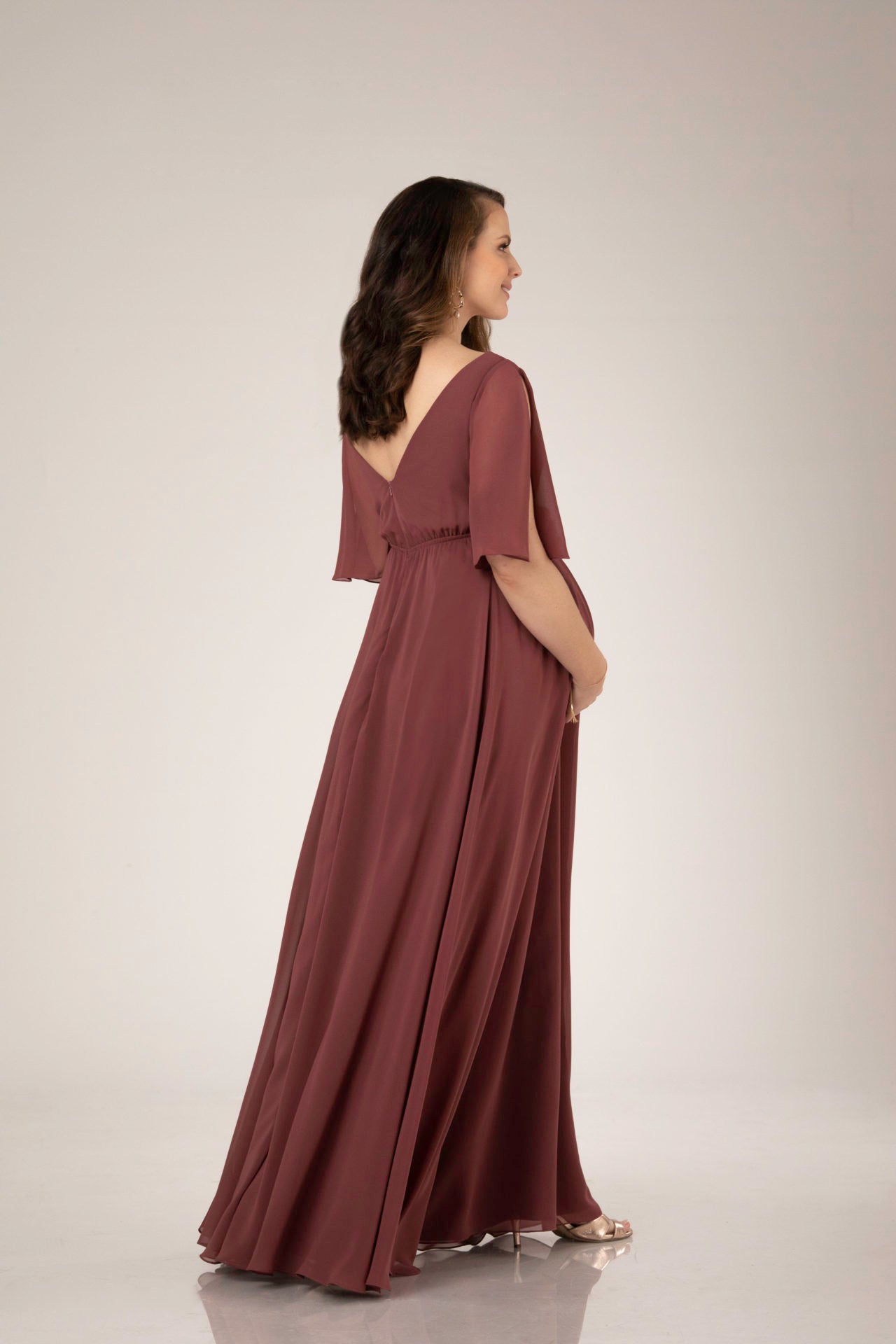 A silhouette for all seasons! Style 9422 from Sorella Vita is a classic bridesmaid dress style with a fresh, flowy twist. The chiffon A-line skirt falls elegantly to the floor, looking rich and decadent with a lightweight feel. The heightened waistline and extra-long fabric make this an effortless maternity bridesmaid gown, too, so moms-to-be can embrace their bump with style! The feminine V-neck elongates the flattering bodice, balancing the empire waist and flowy 3/4 sleeves.