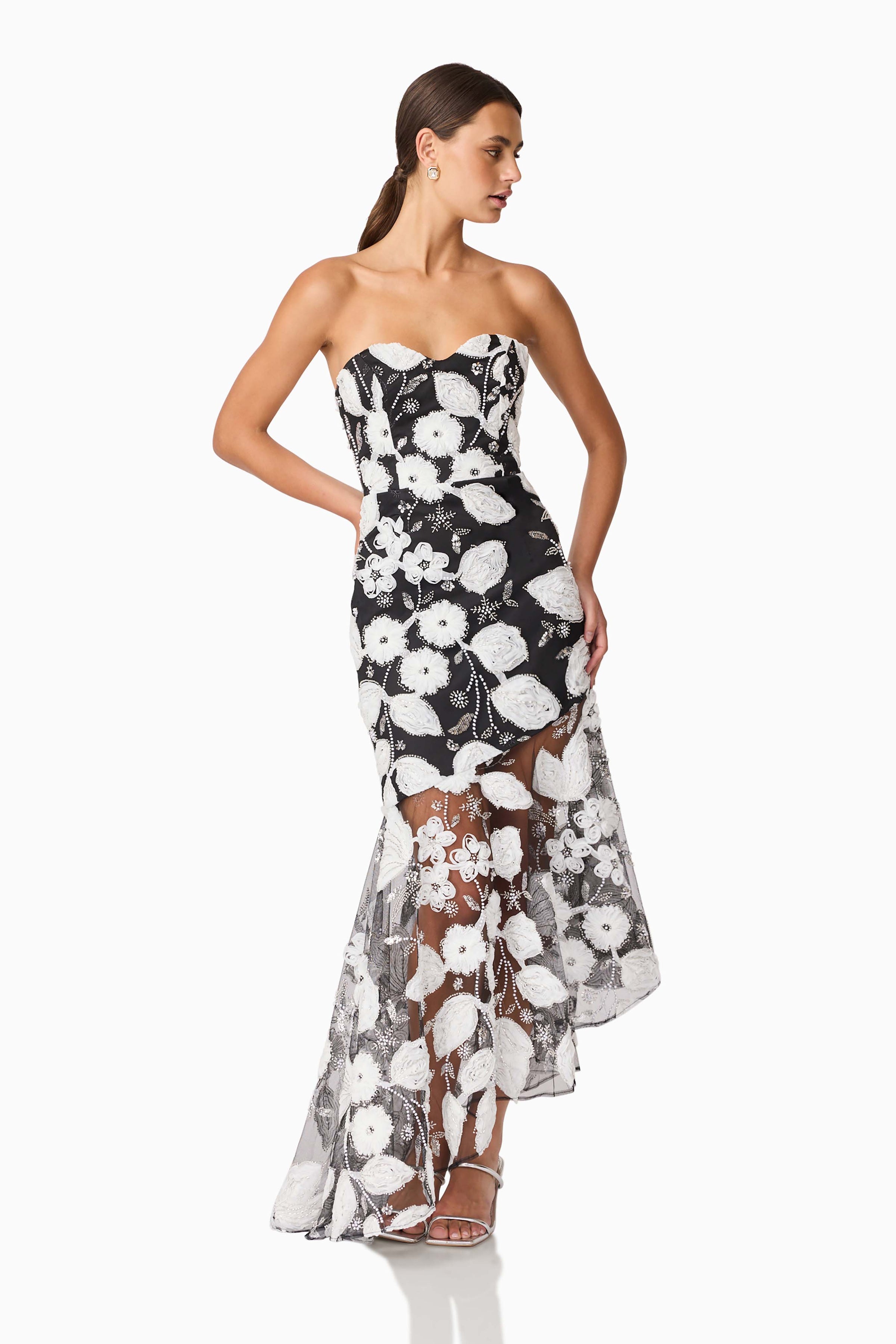 Pair the Carol Strapless Gown with minimal heels and pearl or crystal accessories to keep the spotlight on its detailed embroidery and flattering structure. Understated yet striking, it's a timeless piece you'll cherish for years to come.