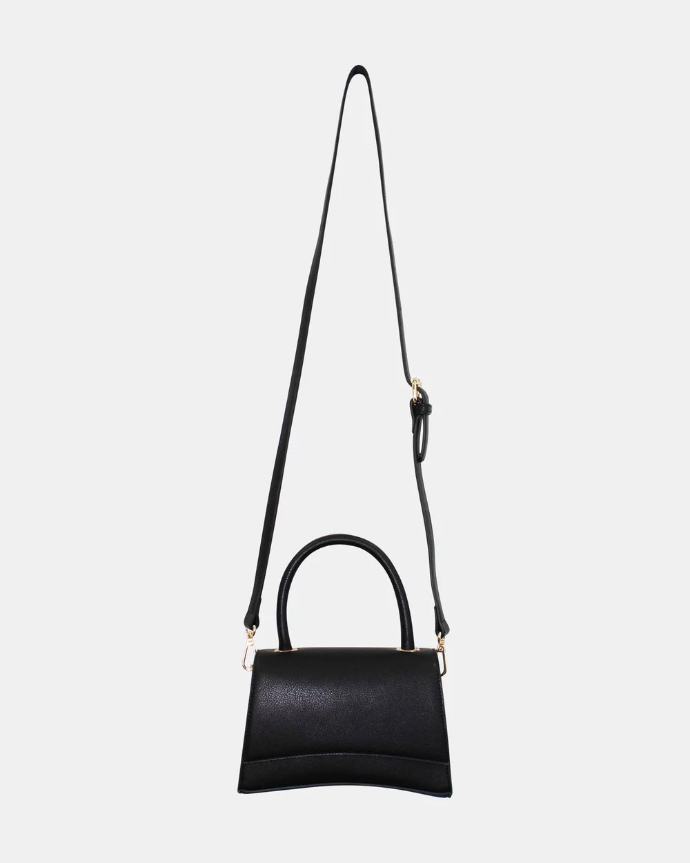 The Morgan and Taylor Zoella Top Handle Bag in Black is classic and chic, easily adding elegance to any look. The gentle curving along the base and tall top handle create a striking and elegant shape. The detachable shoulder strap, PU leather lining, and simple press button closure make the bag an easy, go-to choice to elevate an everyday look, or styling for special occasions.