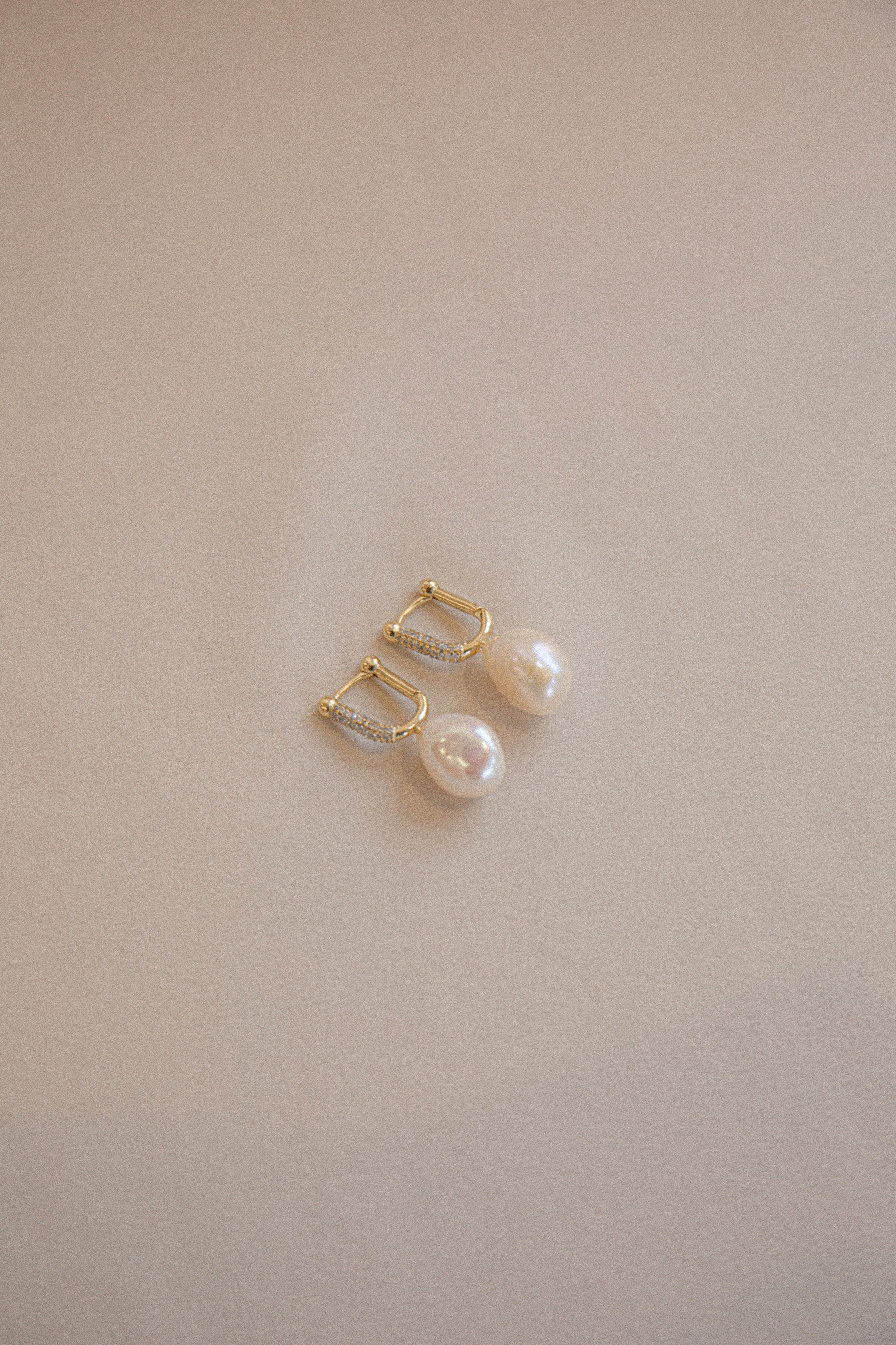 The Tidal Earrings in Gold by Bianc feature a double drop freshwater pearl and cubic zirconia set in 18k gold plated sterling silver.
