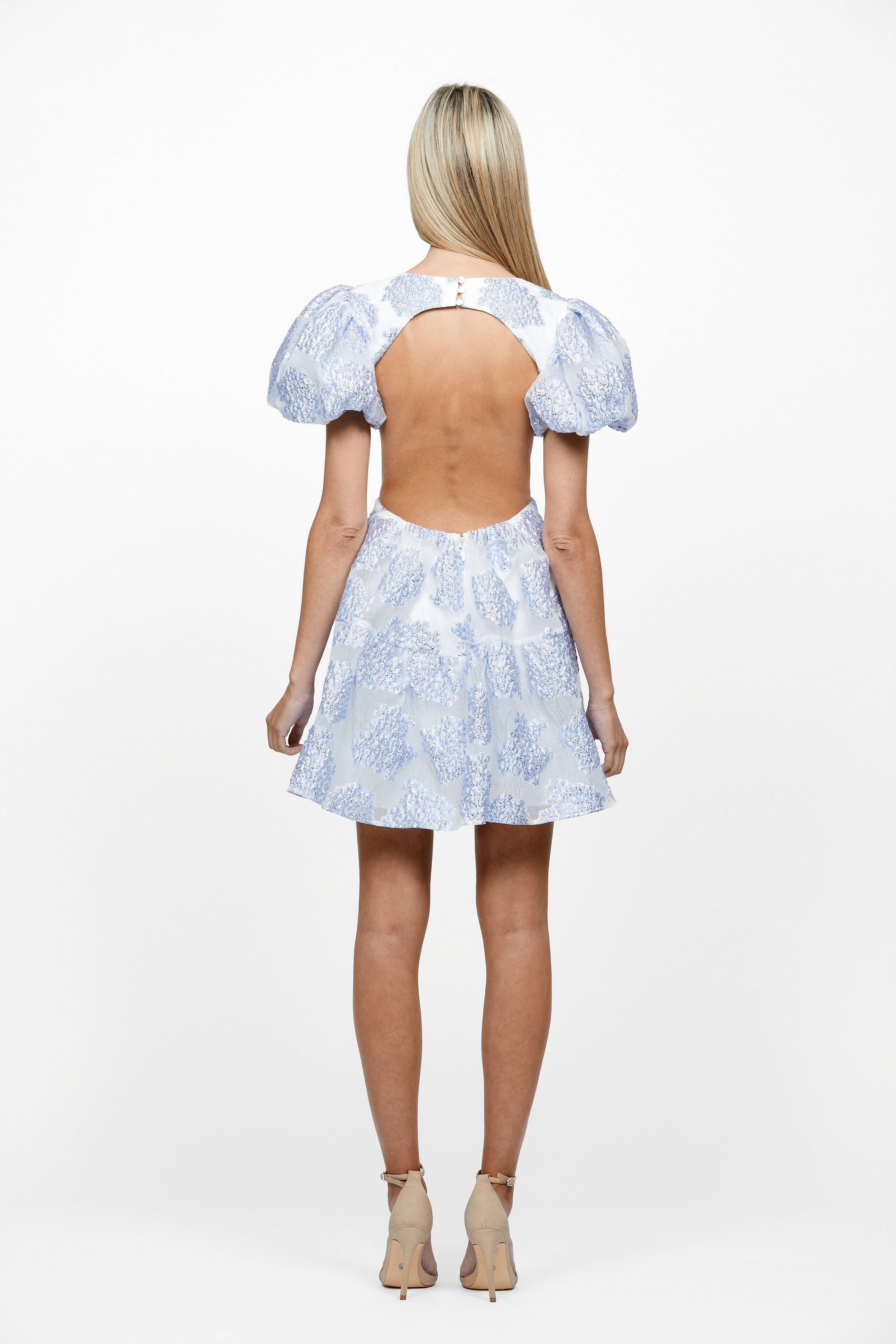 Featuring a high neckline, puff sleeves, and a side bodice and back cut-out, this A-line mini skirt adds a touch of style. Crafted with a lightweight fabric blend, this skirt is breathable for all-day comfort.
