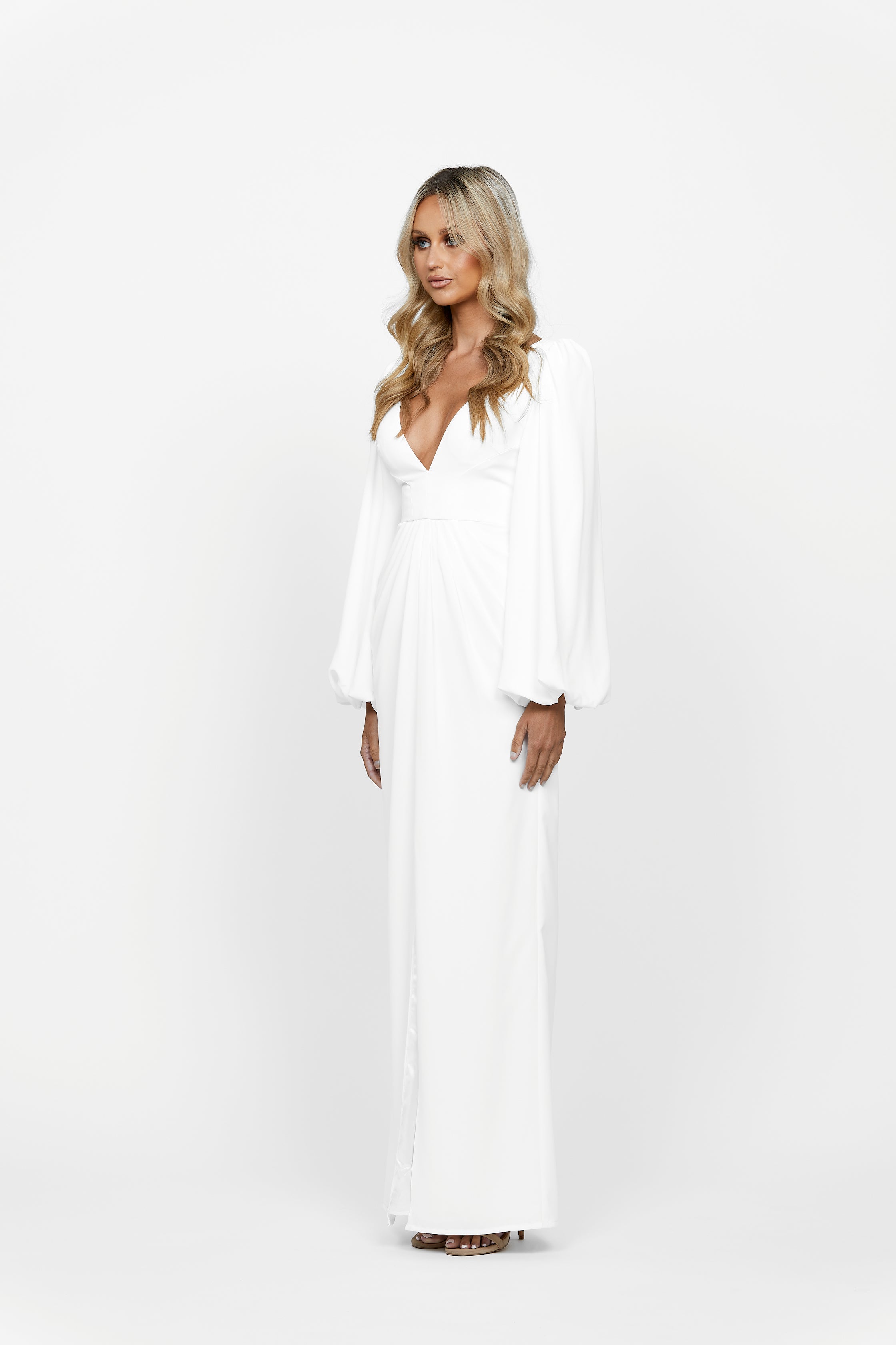 Candance Blouson Sleeve Plunge Gown