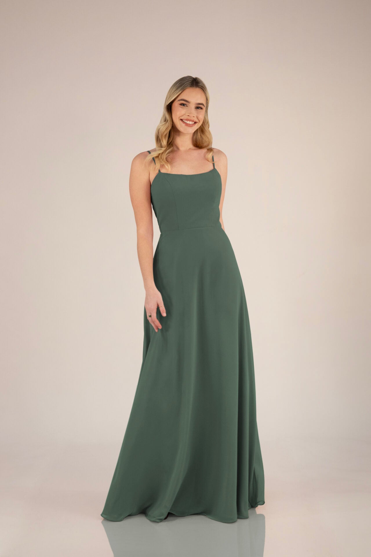 For a timeless bridal party look that will have your bridesmaids floating gracefully down the aisle, Style 9812 adds a sleek and modern touch to that special day. This full-length bridesmaid dress features a soft A-line silhouette in luxurious chiffon fabric. Delicate spaghetti straps glide along the shoulders, meeting a flattering scooped neckline. In the back, a unique corset laced back detail adds a contemporary twist. With a softly flowing A-line skirt, the ageless silhouette flatters all body types for a classic wedding day look.